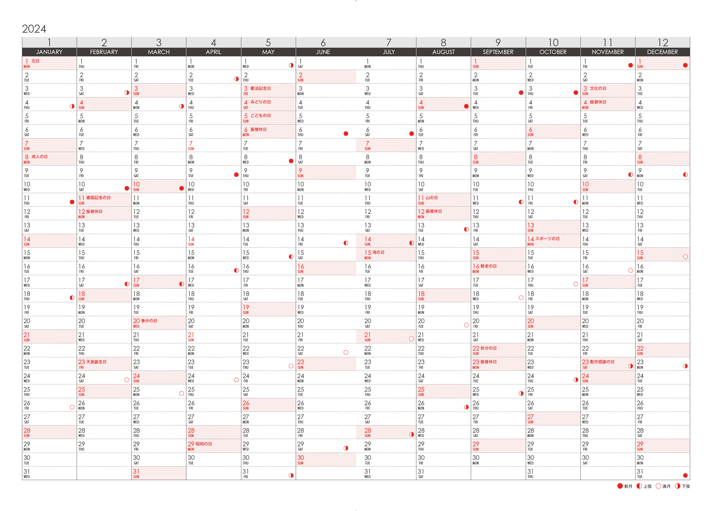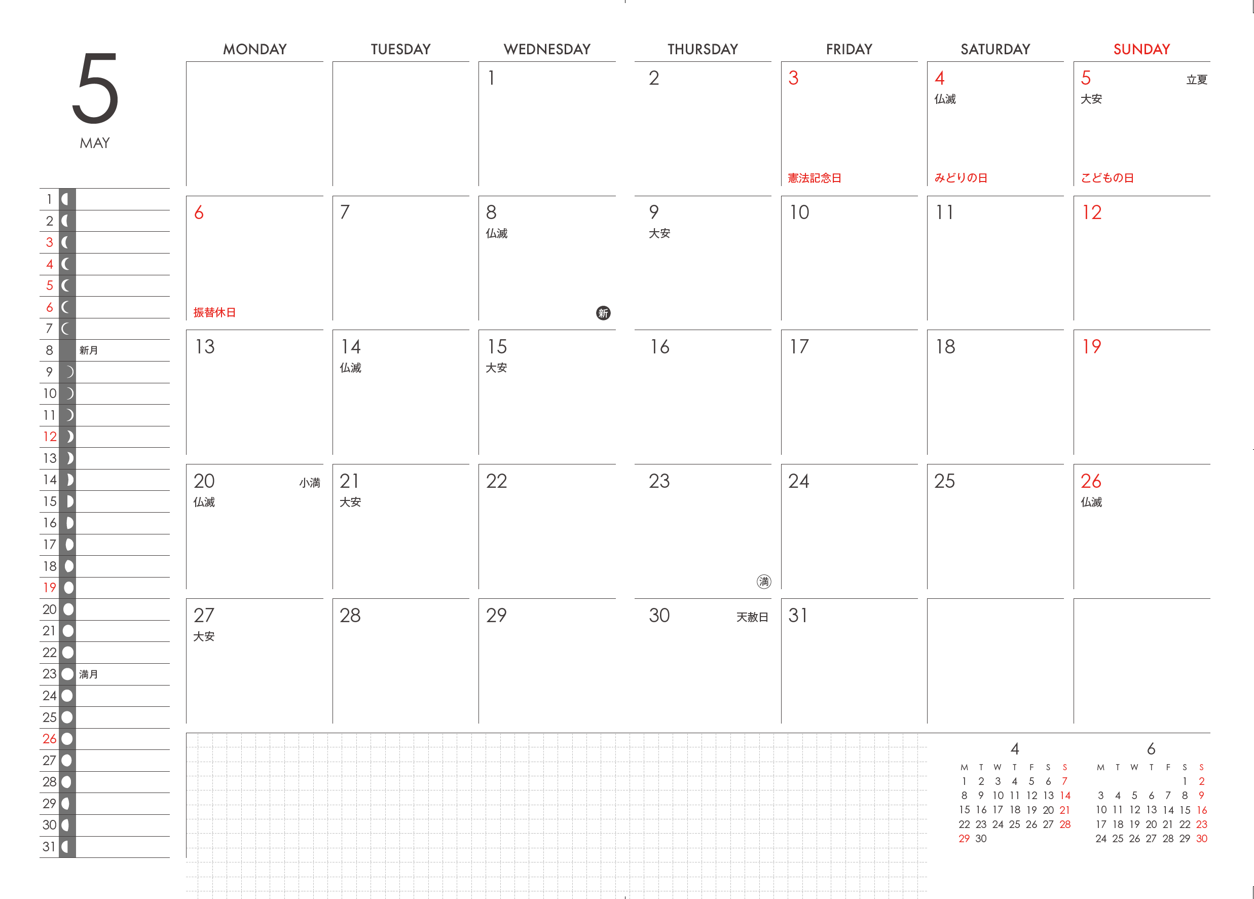 月間ページ(月齢・二十四節気・天赦日掲載)