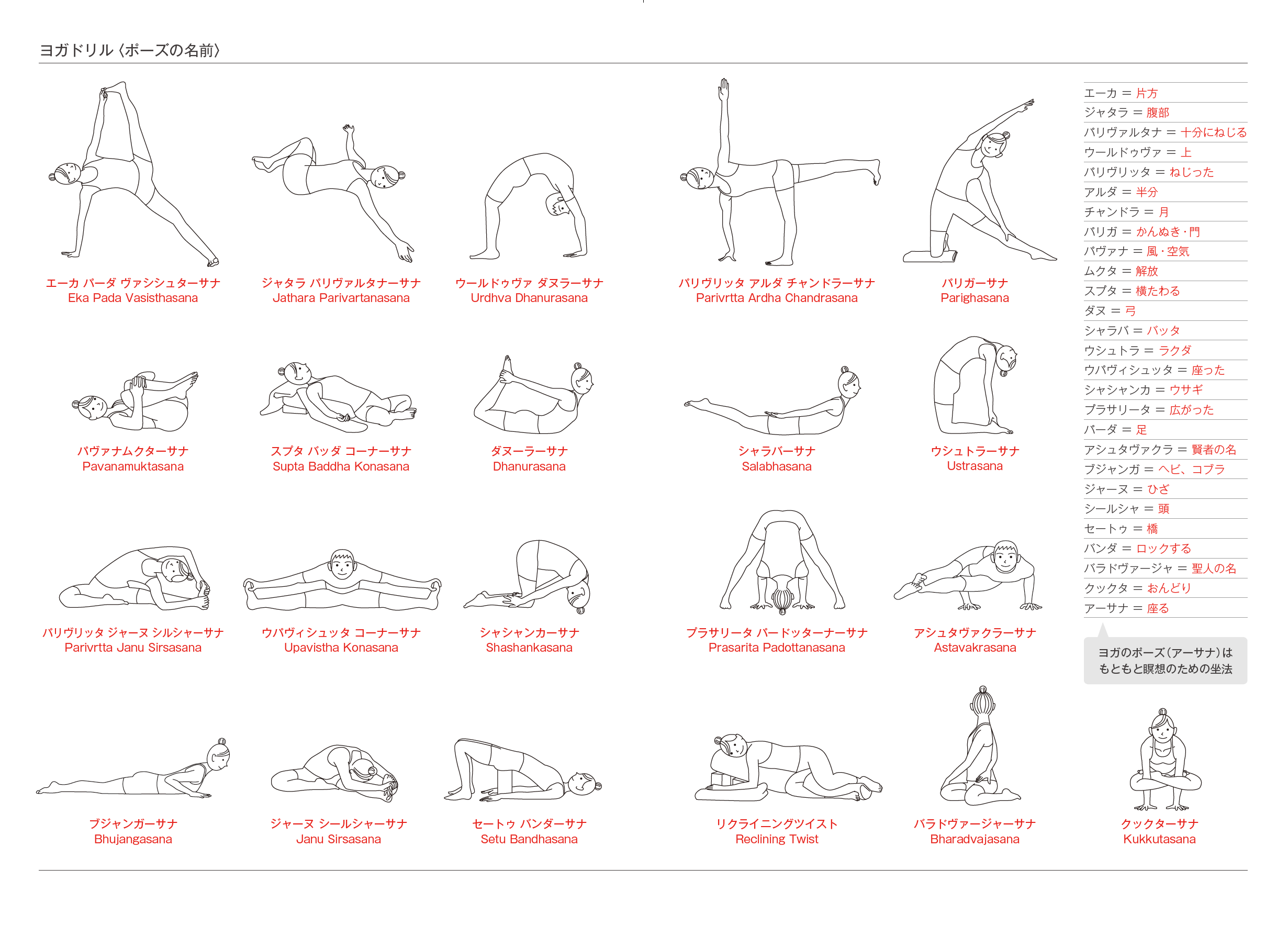 ヨガ手帳は2008年毎年発行しているヨガ手帳。ヨガポーズと瞑想法が合計で80種掲載。