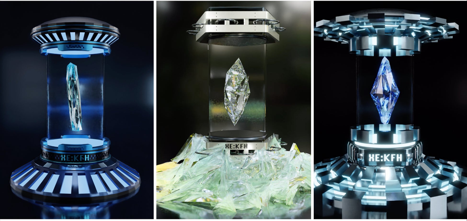 「NFTのデザインは私なりの「XE:KFH」をイメージし、3Dアニメーションにて3つの表現が完成しました。これが物理アイテムと紐づくと思うと、いち制作者として新たな喜びが沸きます。今回このような日本初*の取り組みにクリエイターとして携われた事をとても誇りに思います」(3D NFTデザイナー Eri Momoeda)