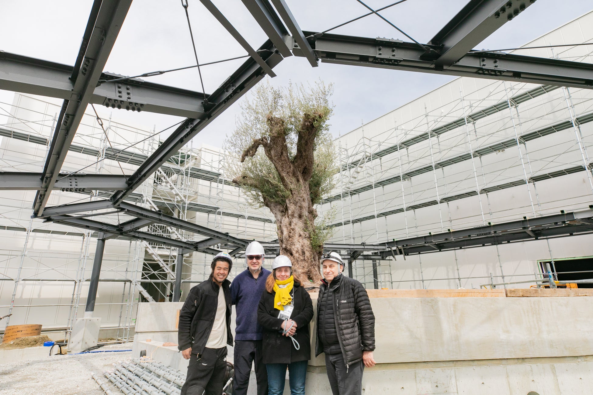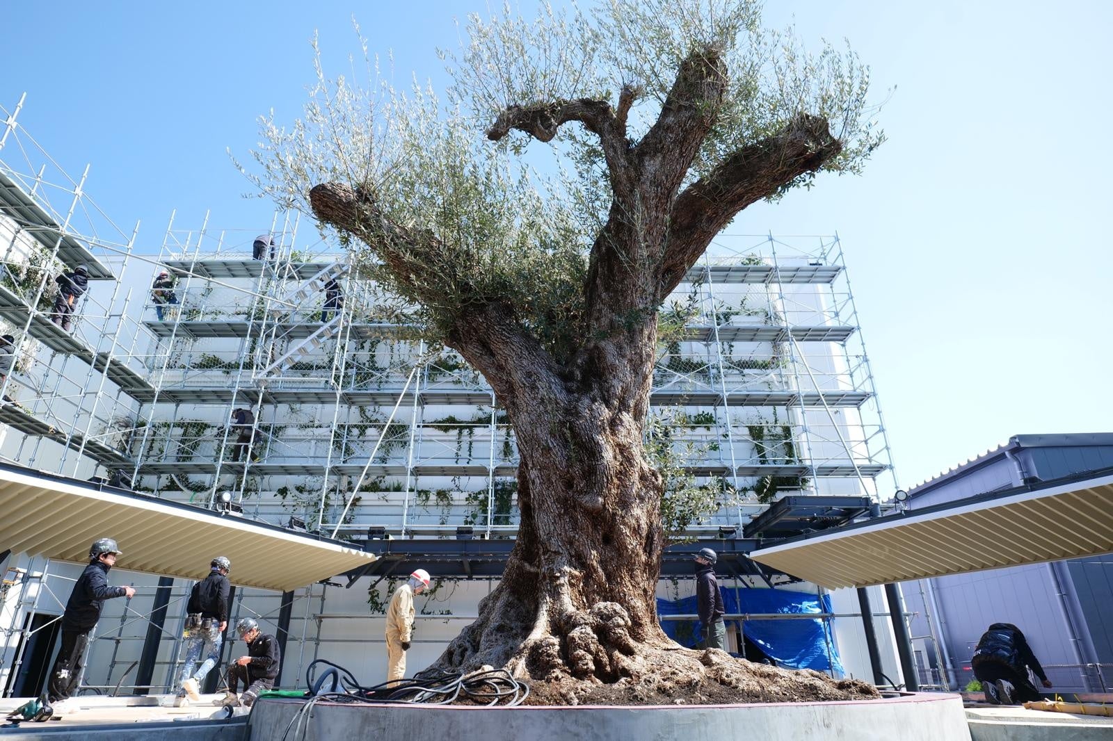 ゼウスはその後、他の8本の千寿オリーブとともに厳重に管理されてきました。そして今回、ニナファーム代表/科学者ベジット・イディアス氏と、COFREX代表/フランスパビリオンの総監督ジャック・メール氏の主導により、貴重な千寿オリーブのうちの1本が日本へと移送され、大阪・関西万博にて初めて一般公開されることとなりました。