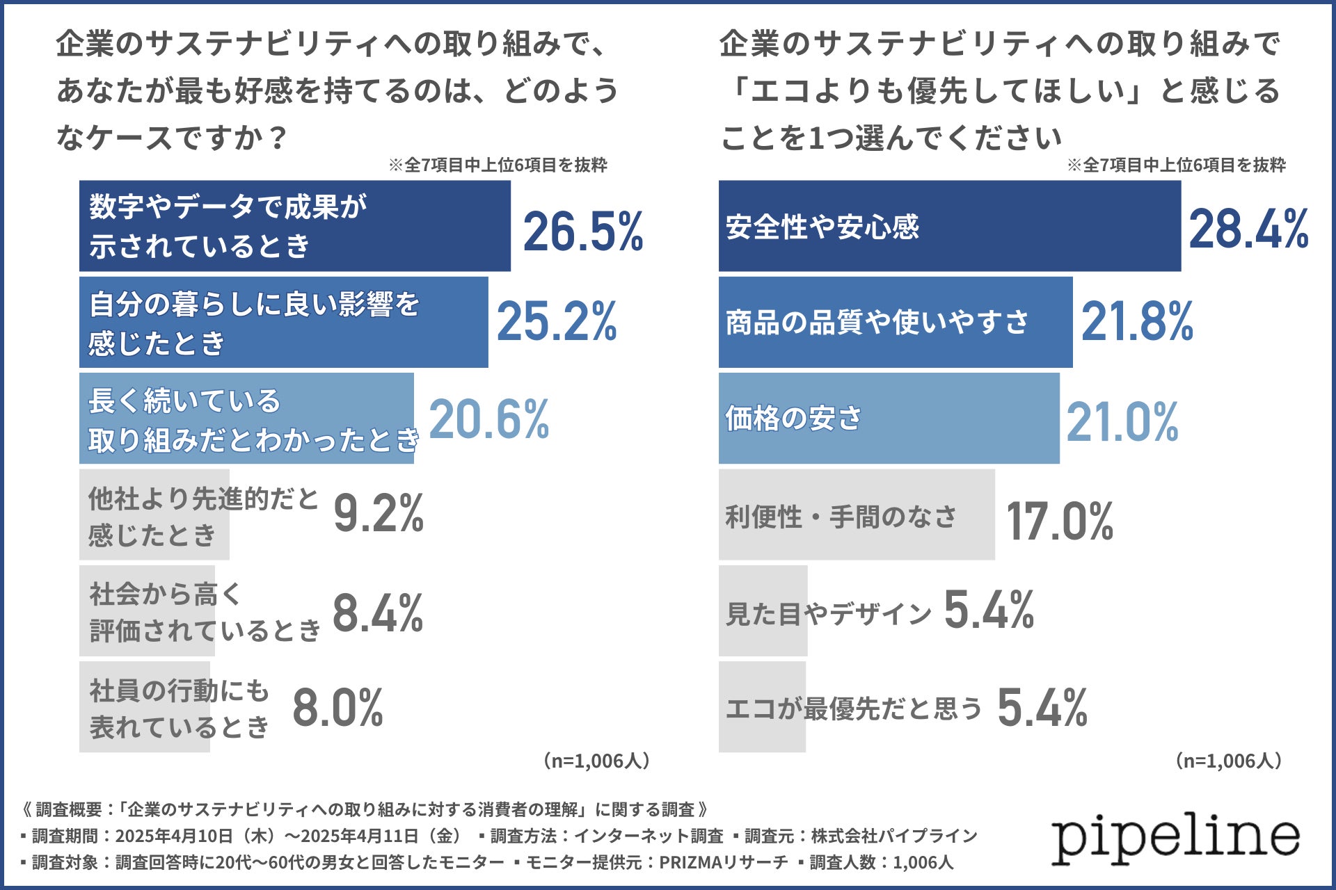 そこで株式会社パイプラインは今回、全国の20代~60代の男女1,006人を対象に、「企業のサステナビリティへの取り組みに対する消費者の理解」に関する調査を実施しました。