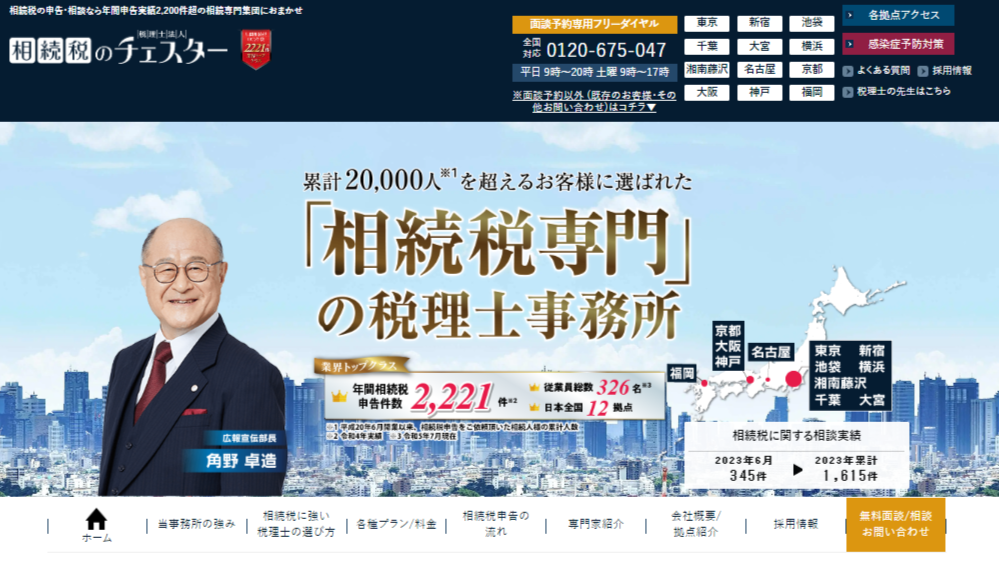 高齢化社会であることに加え、平成27年度の税制改正「基礎控除額」の引き下げにより、相続税申告手続きが必要とされる該当者が増えました。また、令和5年度には「生前贈与」や「空き家」に関する税制改正の発表も行われ、相続対策や相続税申告はより複雑化し、相続税の専門知識を持つ税理士の需要が高まっていると感じております。東京本店から始まったチェスターは、現在グループ会社を含め社員数は300名を超え、全国13拠点に拡大する現在進行形で成長中の事務所です。今後も、社員の成長と共に需要のある地域へ展開を進め、少しでも多くの皆様の相続のお役に立てるよう、相続税専門で圧倒的No.1の税理士事務所を目指してまいります。