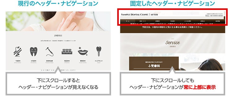 ヘッダーやナビゲーションを固定して、スクロールしても常に表示することが可能に!