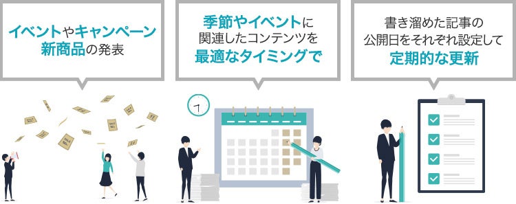 ●イベントやキャンペーン、新商品の発表日時に合わせて自動で公開
