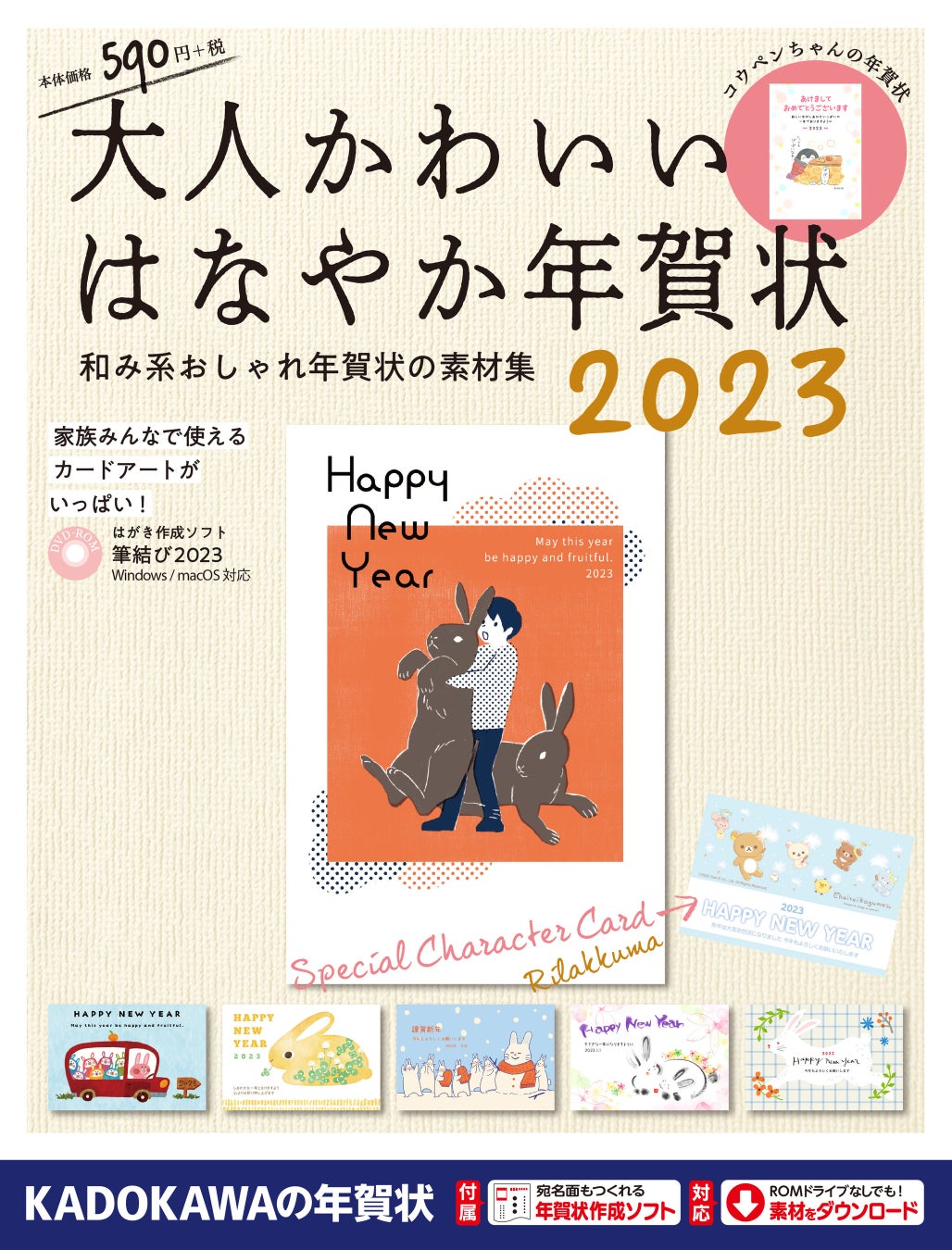 自分らしいナチュラルさを大事に、かわいすぎずそれでいてはなやかさを演出できる、大人のための年賀状を集めました。 巻頭は人気のリラックマの年賀状を特集。 さらに人気のイラストレーター・デザイナー11名による大人のためのかわいいデザインを収録。はがき作成ソフト「筆結び2023」が付属。