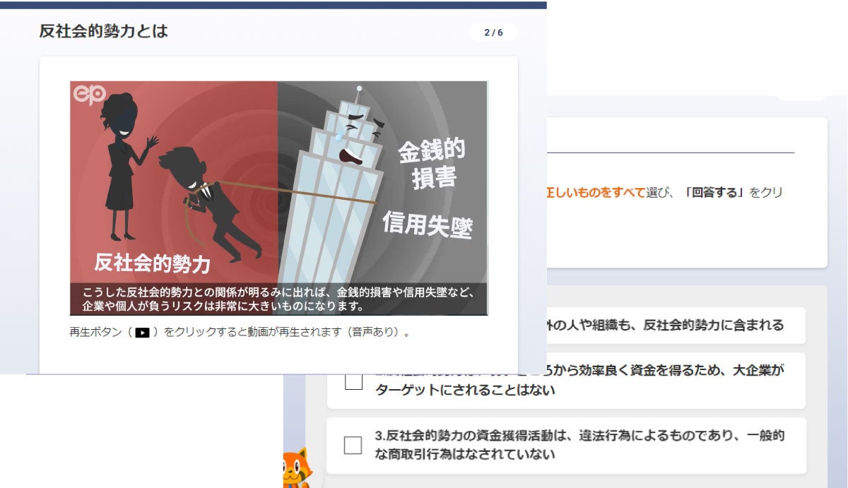 EPのeラーニング教材「反社会的勢力排除の基礎知識」の特長