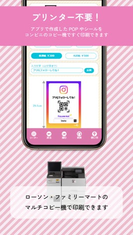 コンビニに設置されているマルチコピー機で印刷コードを入力すると、作成したQRコードがPOPになって出力されます。