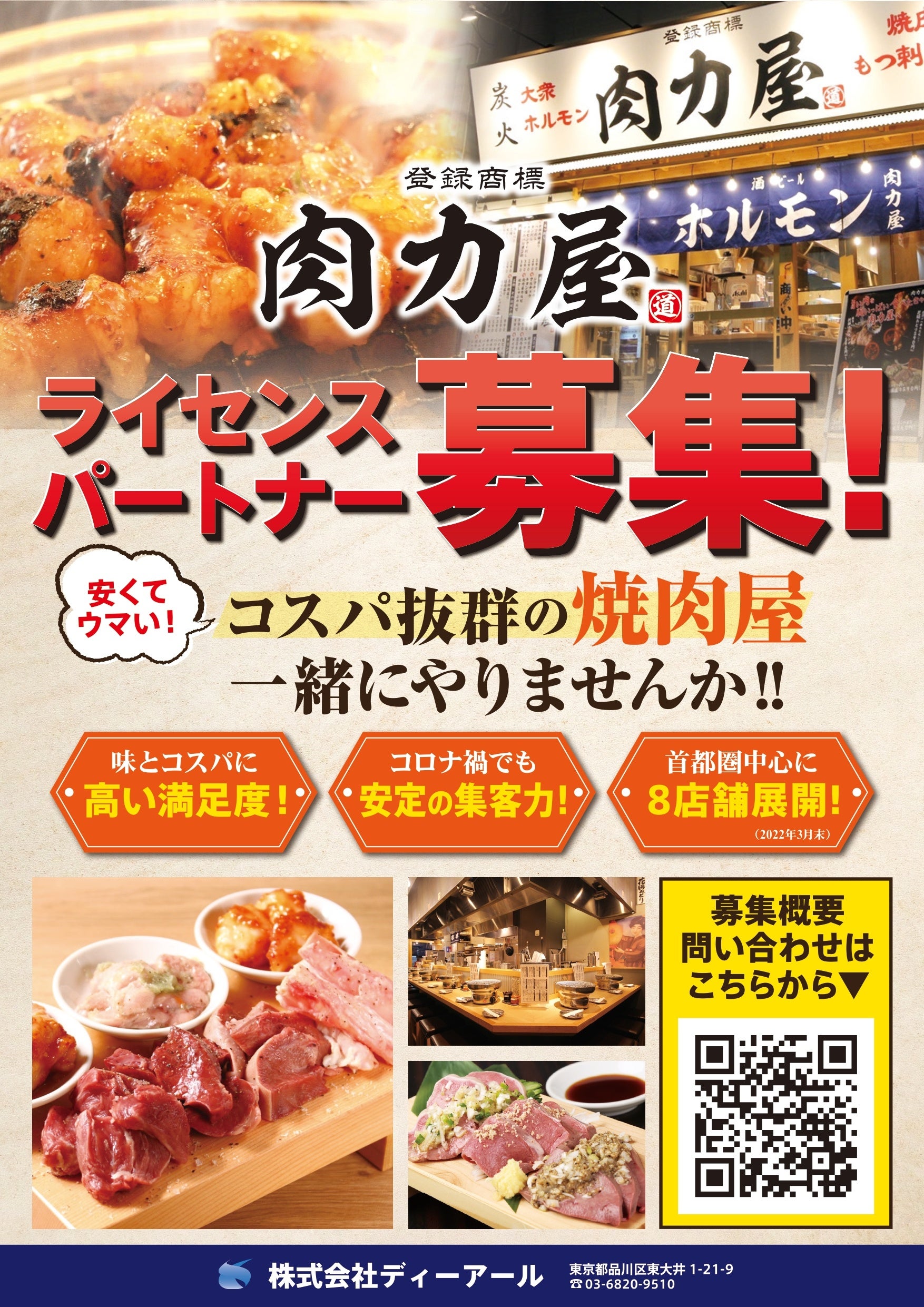 業績好調につき、「肉力屋」では、一緒に事業を展開いただける、ライセンスパートナーを募集しております。