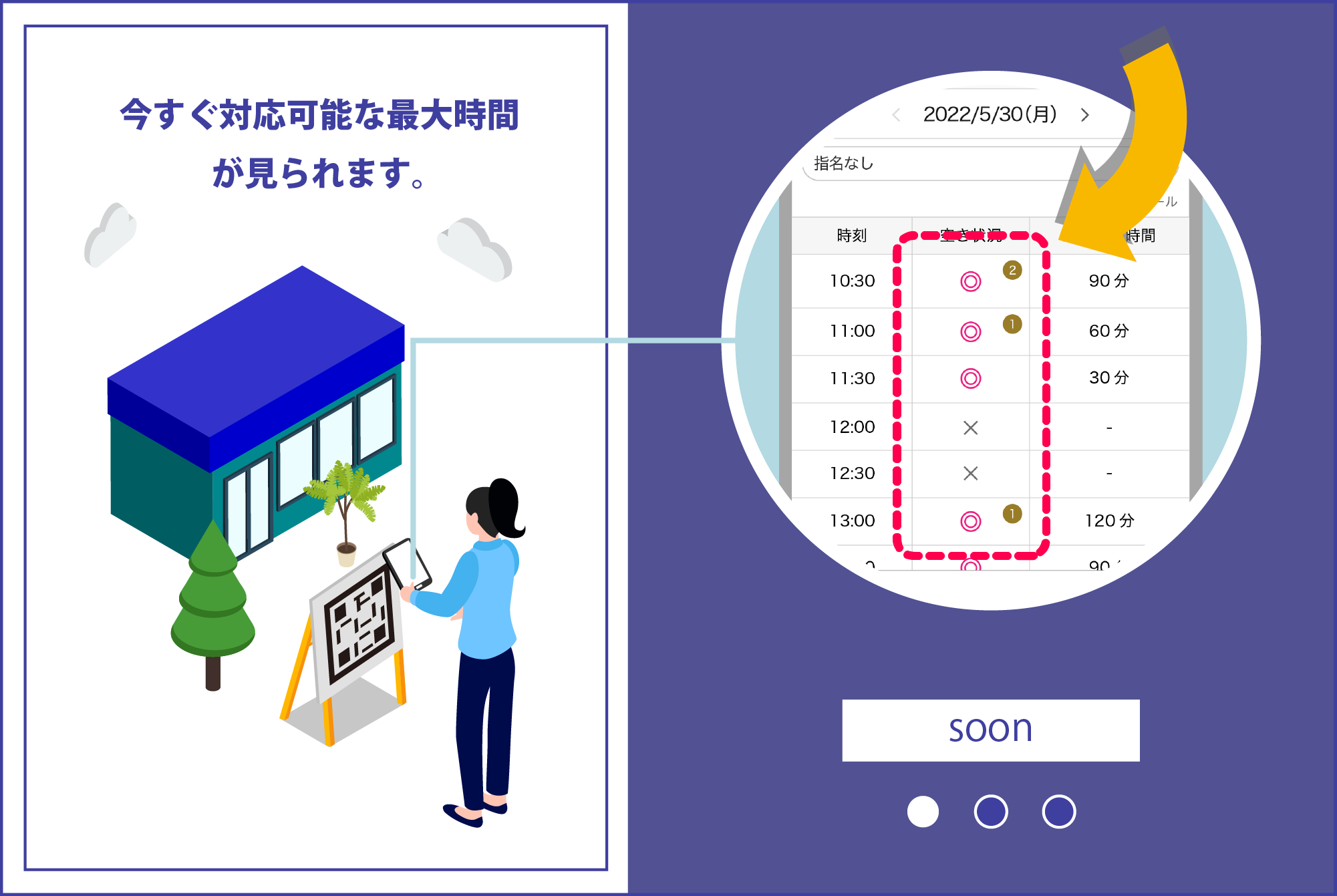 1:店頭で、今すぐできる施術の最大時間と空席状況がわかるようになり、飛び込み客を増やす技術特許【特許7002089号】
