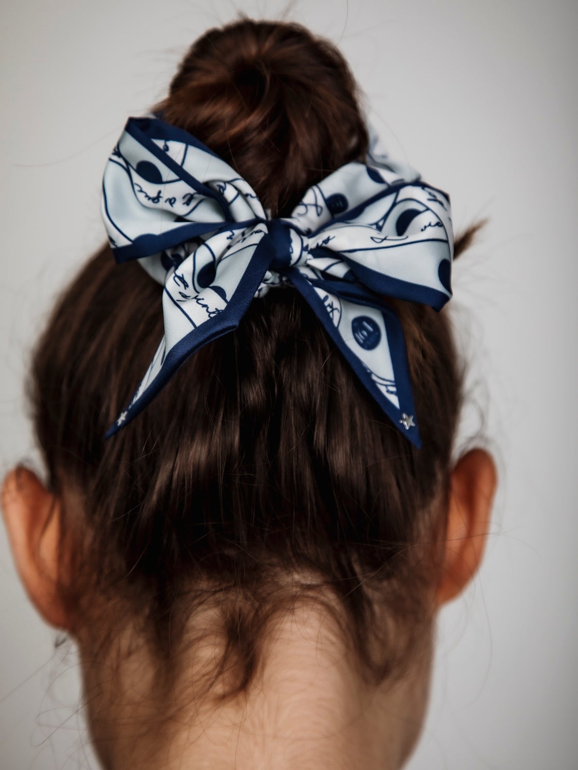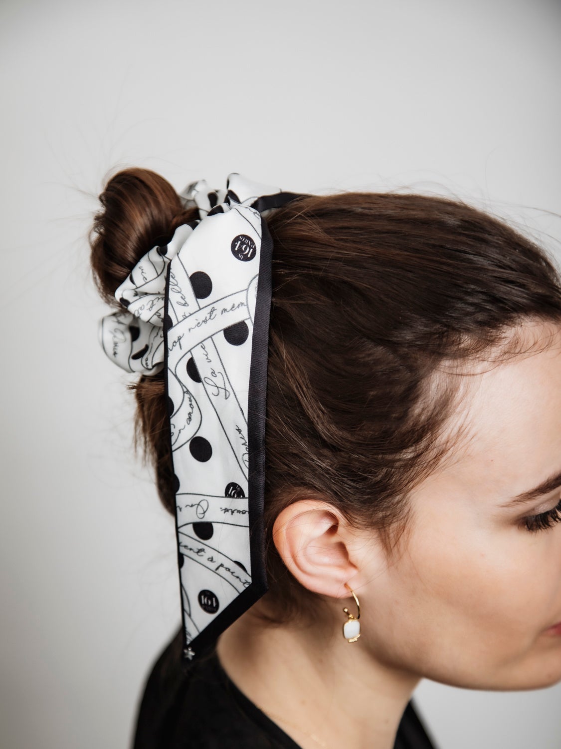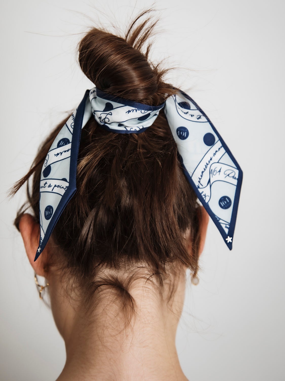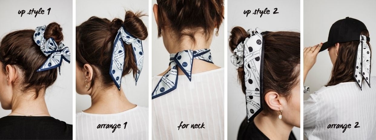 LE RUBONコレクションのシュシュは1つで4つ以上のスタイリングができる優れものです。垂らして結んだり、リボンにしたり、輪の部分のみ、サッシュの部分のみで使うことが可能。サッシュの部分は手首や首に巻いたり、バッグに巻いてアレンジすることも。