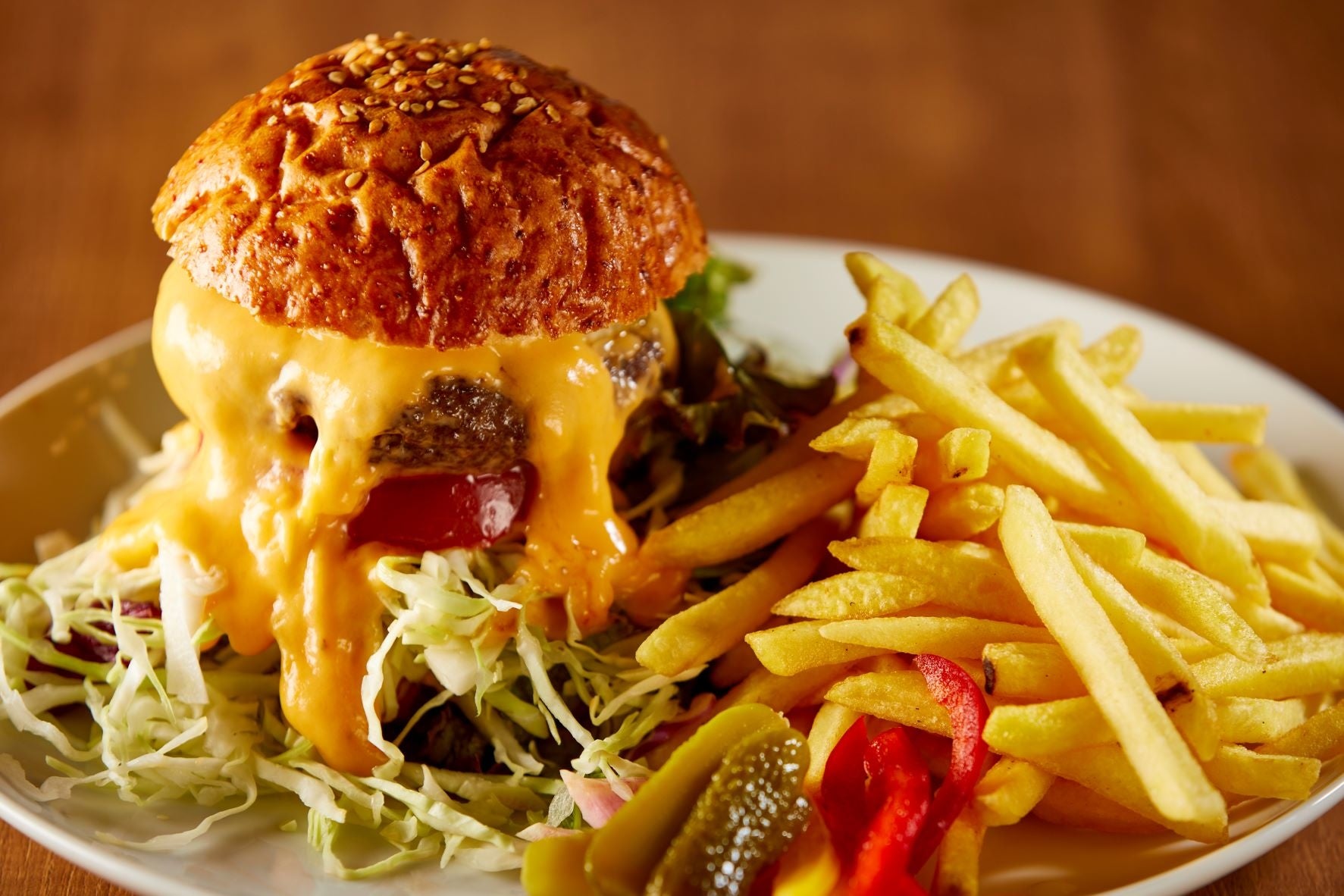 国産牛、自家製パテ、たっぷりのチェダーチーズでつくったMMG特製ハンバーガー。肉のおいしさを存分に楽しむことができる肉厚バーガーは当店ならでは!の逸品です。