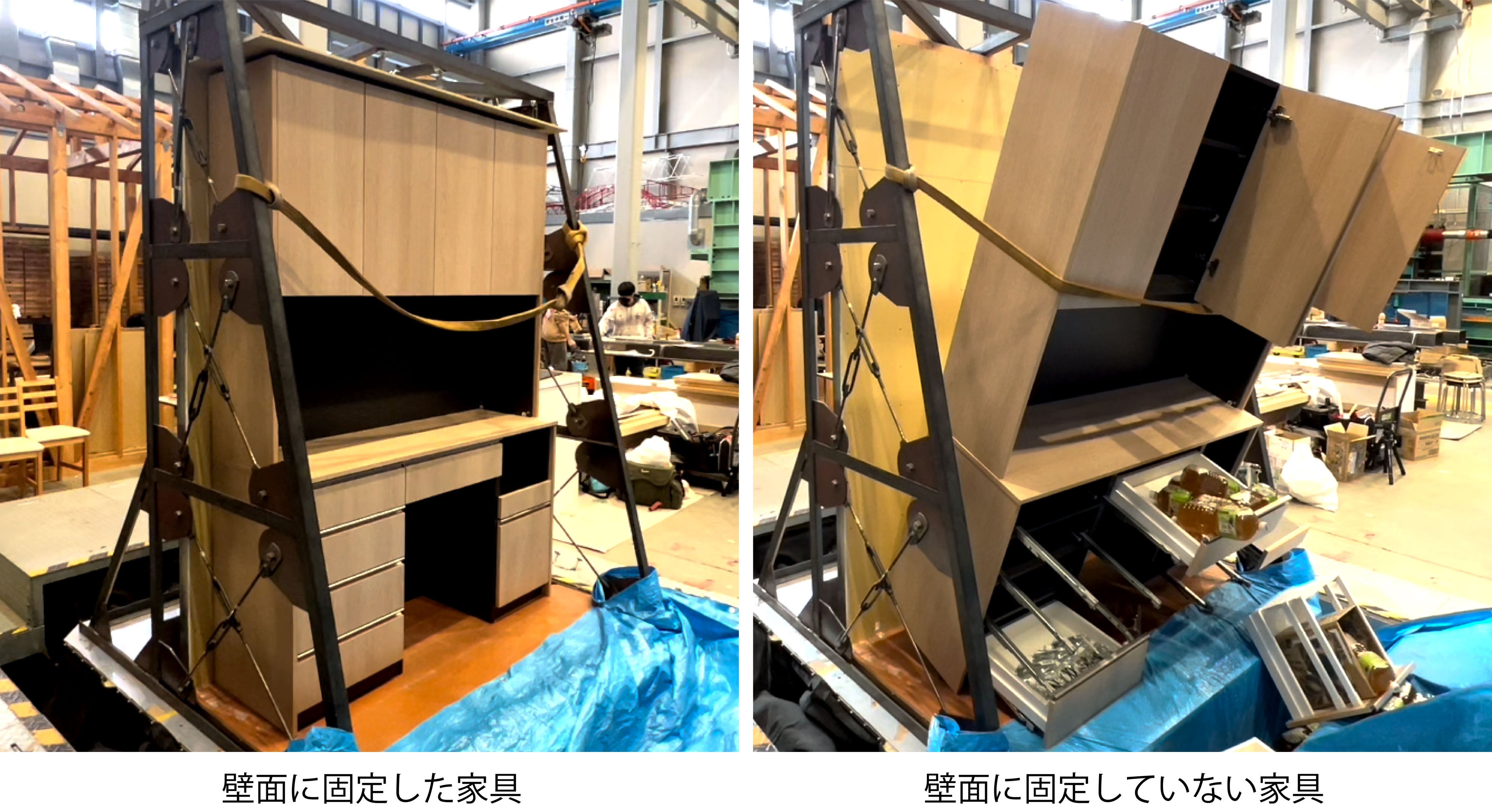 ▲家具の耐震実験の様子 https://youtu.be/-bU9eHdmYQ8?si=RpDM-ZD7pYD4x_eH