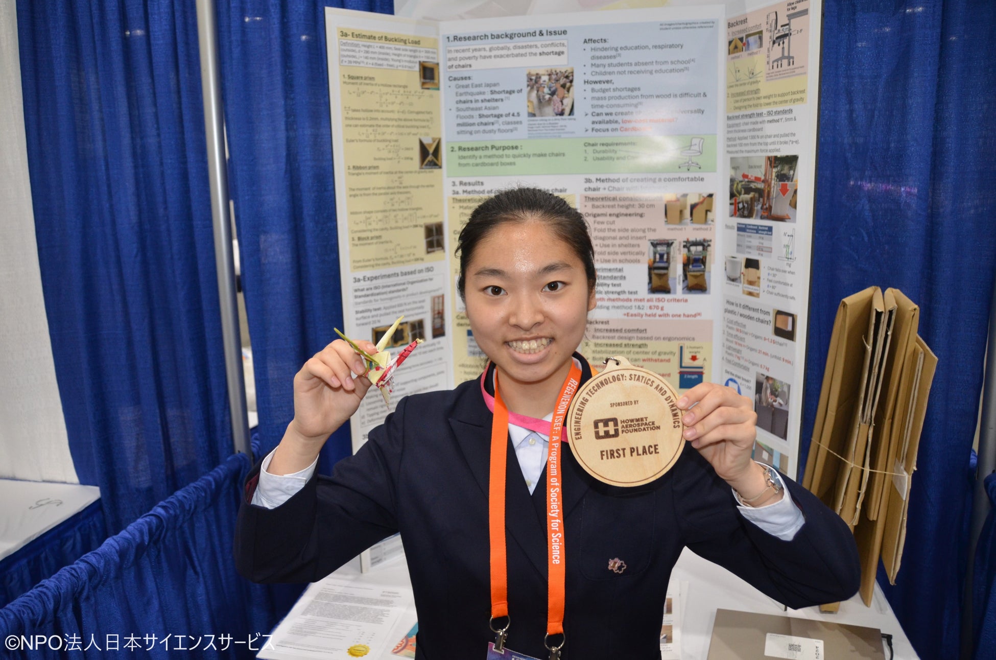 今年は、桜蔭高等学校の中辻知代さんの研究が日本代表として8年ぶりに優秀賞1等に輝くなど、下記5研究が計6つの賞を受賞しました。また22の各部門での1等受賞者の中から特に優秀と認められた12プロジェクトには Top Awards が贈られました。全体トップの賞となるジョージ・ヤンコプロス賞には米ケンタッキー州のGrace Sunさんが選ばれ、賞金75,000ドルが贈られました。