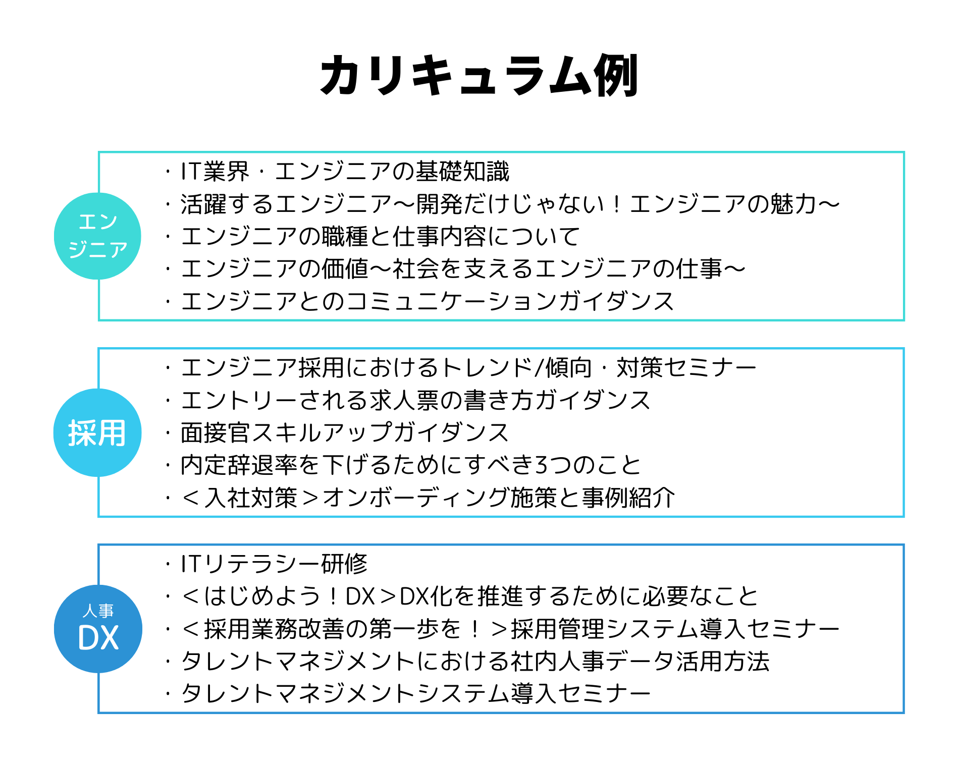 以下のカリキュラム例はこれまで提供してきた研修コンテンツの一部です。