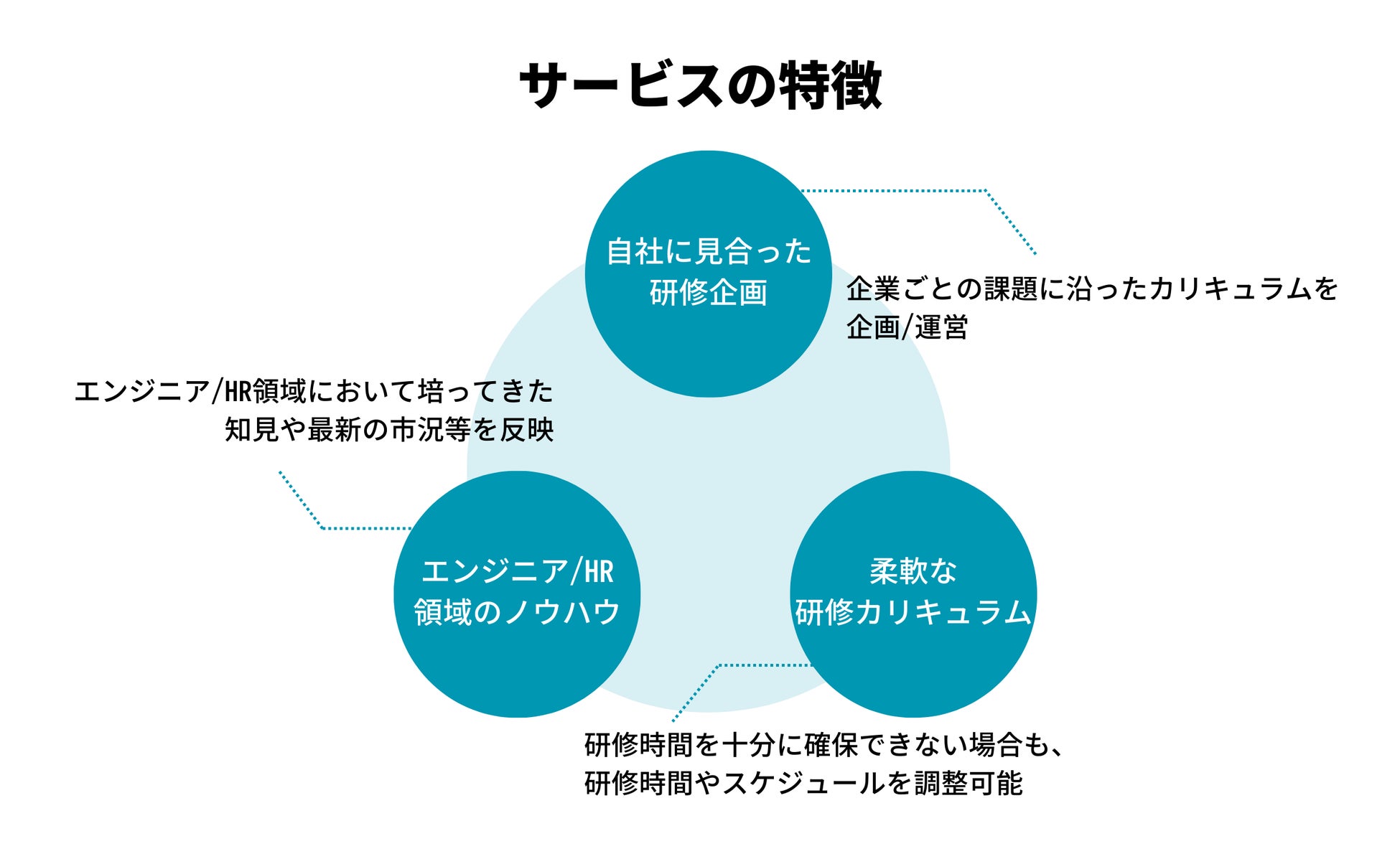 エンジニア、採用、DXなど当社のコンサルティング事業において培ってきた知見や最新の業界動向を反映し、お客様の課題に見合う研修内容をご提案します。