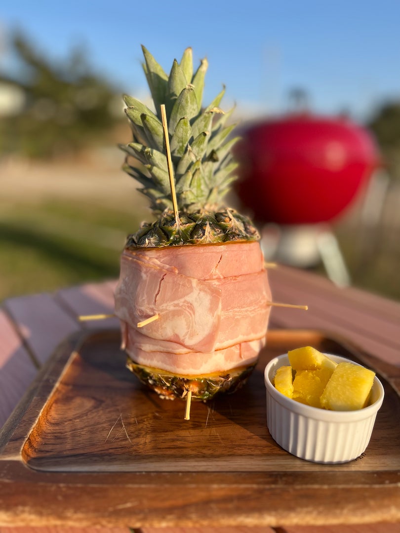 ベーコンの塩味とパインの甘みがクセになる、アメリカンBBQの定番!(カットパインBBQもあり)