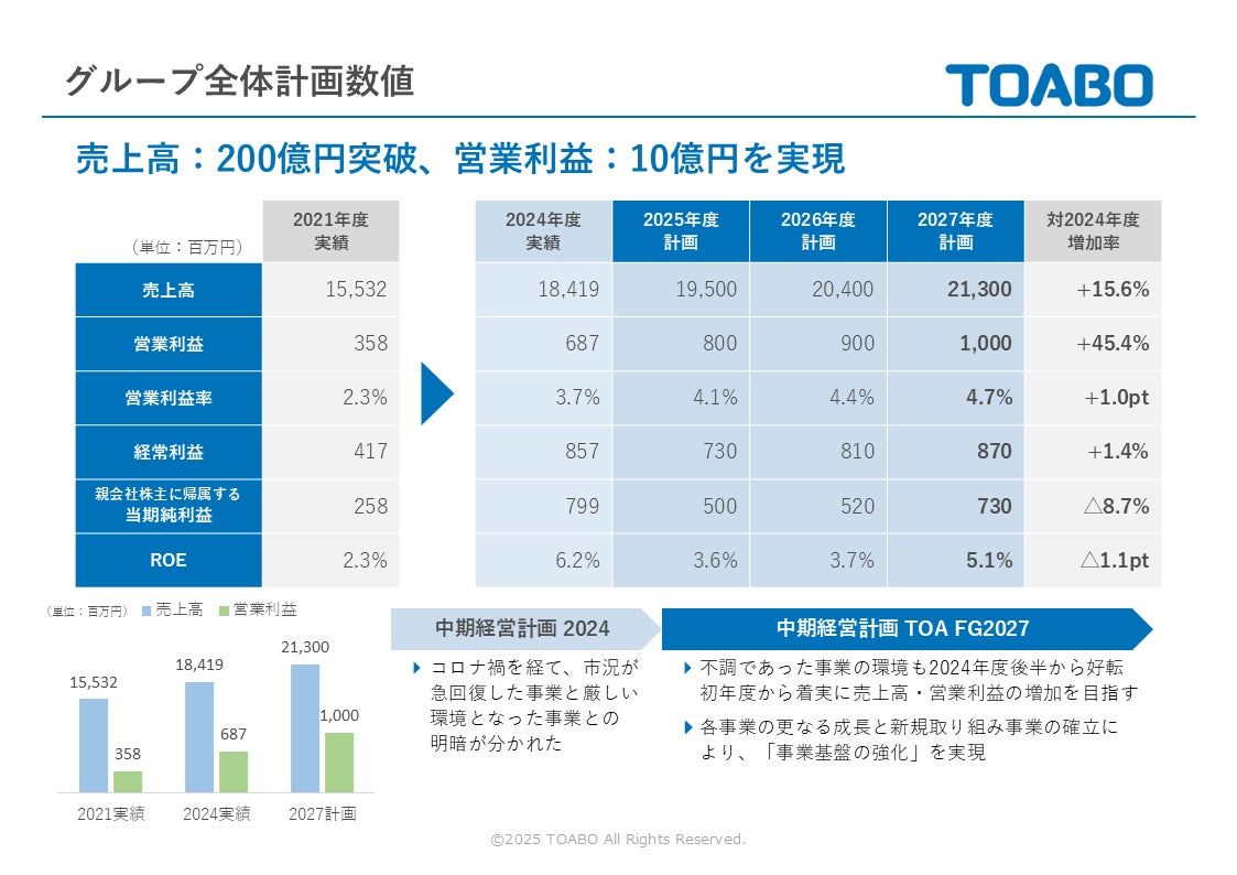 詳細は、2025年2月13日発表の「中期経営計画策定のお知らせ」および「中期経営計画(2025~2027年度)TOA FG2027 資料」をご覧ください。