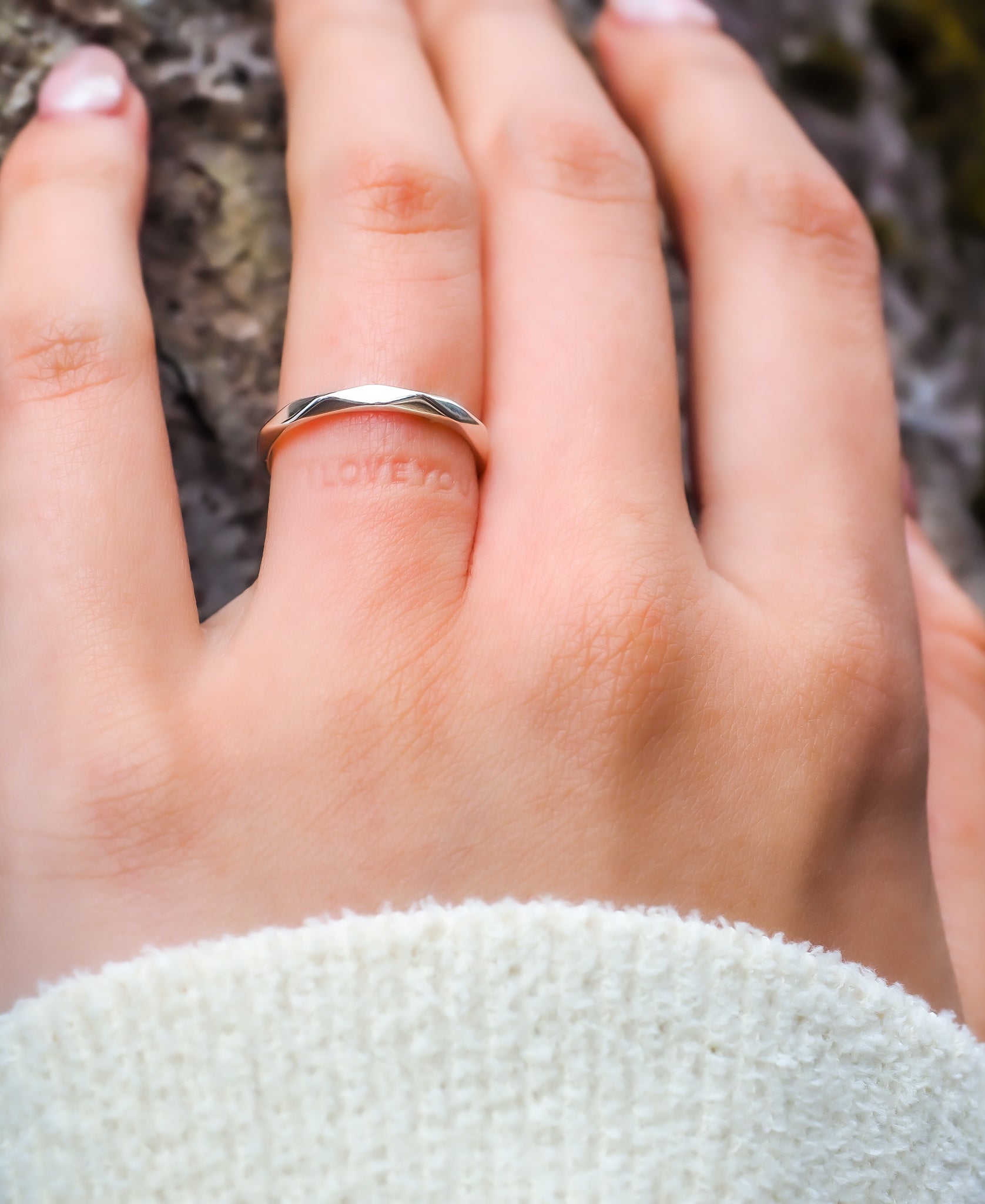本商品は、リングを身に付けることで内側の凸によってデザインされた“想い”が刻まれる仕様。