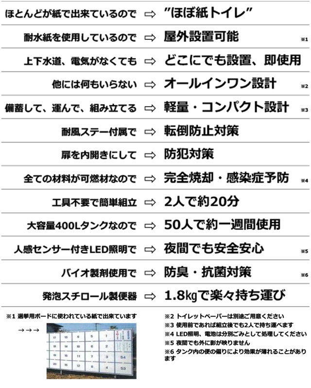 災害時に最適な備蓄型・組立式・個室トイレ『ほぼ紙トイレ』