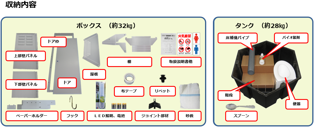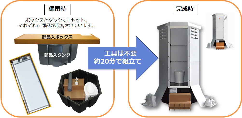 「ほぼ紙トイレ」は工具不要で約20分で組み立てられ、完成後すぐ使用出来ます。