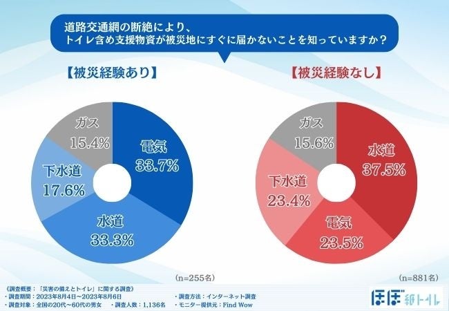 被災の経験の有無に関係なく、トイレが使えないことや支援物資が届かないなどの災害時の問題を知っている人が多いことが分かりました。