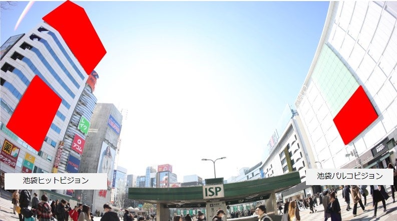 池袋駅東口エリアの大型ビジョン「池袋パルコビジョン」と「池袋ヒットビジョン」でシンクロ放映の販売開始