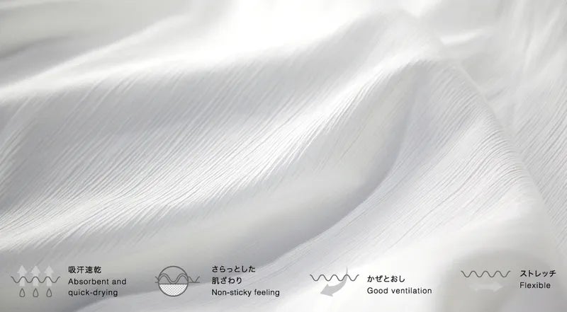 ステテコドットコムのステテコの生地である「高島ちぢみ」は、江戸時代から日本の夏を快適に過ごすために作られた「綿ちぢみ」を現代にブラッシュアップさせたもの。先人たちの知恵が詰まった昔ながらの機能素材は、日本のものづくりが世界に誇る技術力の賜物とも言えます。