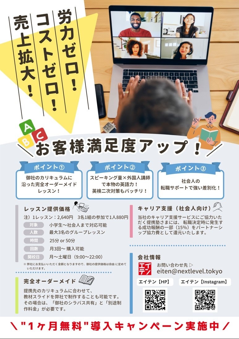 株式会社NEXT LEVELは、英語×転職のエイテンを通じて、