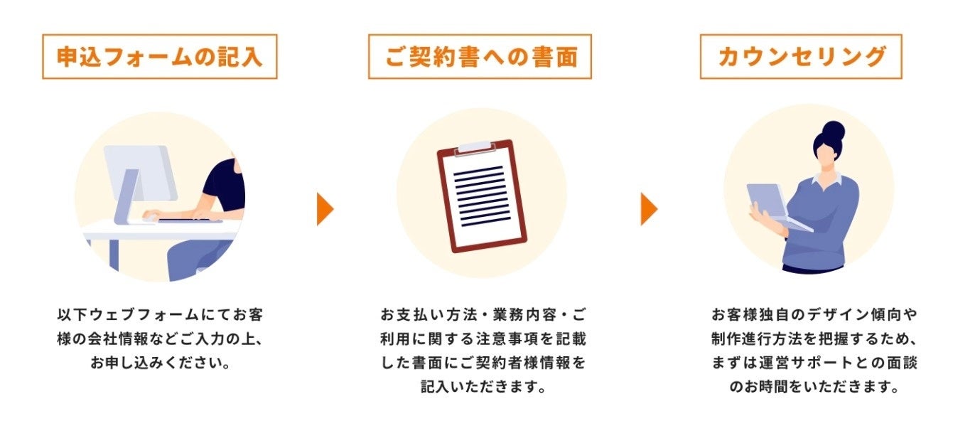お申し込みはたったの3ステップで完了します。申込後、翌日から利用可能です。
