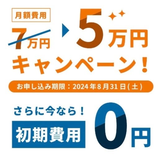 8月末までのお申し込みで月額5万円、初期費用が無料になる「今だけお得のリリース記念」も開催中