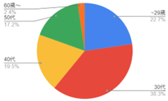 弊社サービスに登録いただいている方の年齢割合、登録時の年収分布はいずれの期間もほぼ変わらず、上記グラフの様な割合となっております。弊社の場合30代を中心に20代~40代が登録者のボリュームゾーンとなっております。