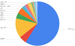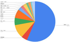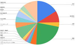 期間ごとで少しずつ求人案件の内容は異なるものの、全体の傾向に変化は見られない。いずれの期間も製薬メーカーの案件が35-40%、医療機器が約10パーセント、CRO・SMOが25パーセント前後で推移している。