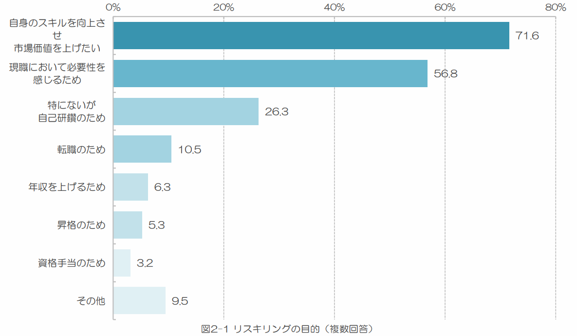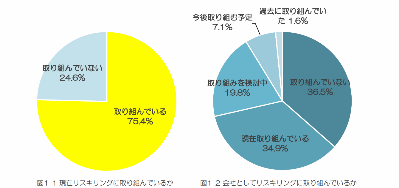 企業の経営を担うエグゼクティブはリスキリングに積極的に取り組んでいる一方、企業全体の取り組みとしてはまだリスキリングは浸透していない状況です。しかし、現在リスキリングの取り組みを予定・検討している企業も多く存在していることから、「今後リスキリングに取り組んでいると回答する企業の割合は増加する」と言えるでしょう。