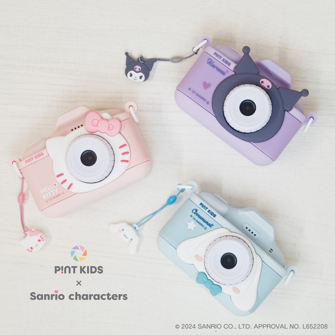 このコラボレーションでは、「ハローキティ」、「シナモロール」、「クロミ」がそれぞれデザインされたオリジナルバージョンのピントキッズが登場します。子どもたちの創造力を育む楽しいカメラが、さらに可愛らしいキャラクターたちと一緒になって新たな魅力を引き出します。