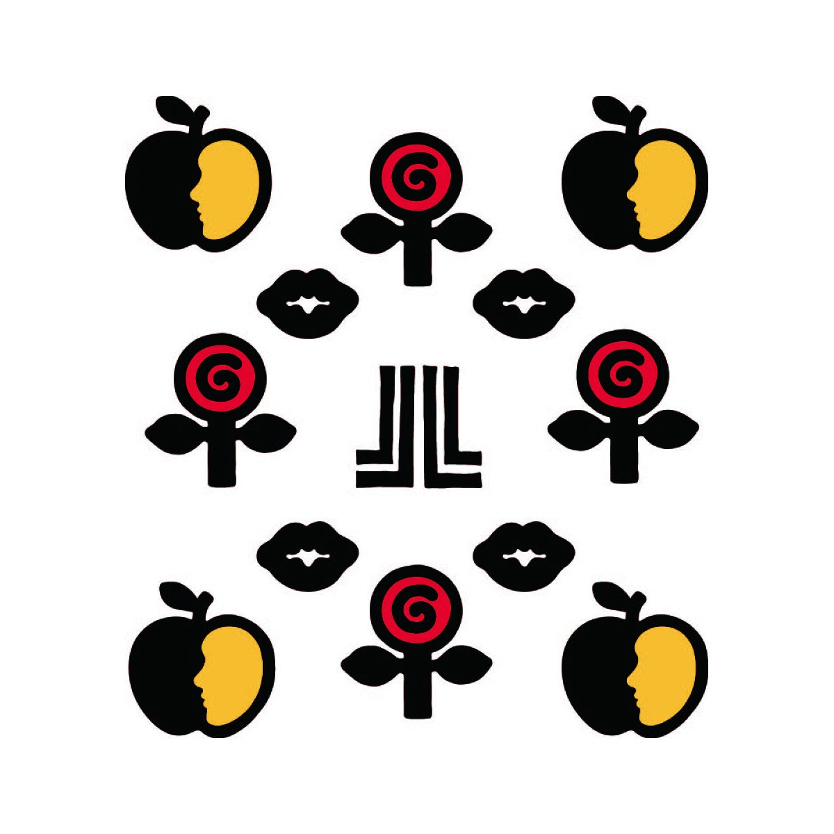 1)ダブルJLマークにテーマであるLOVEの⽂字を合わせて⼥性らしい⽬と唇を描きました。