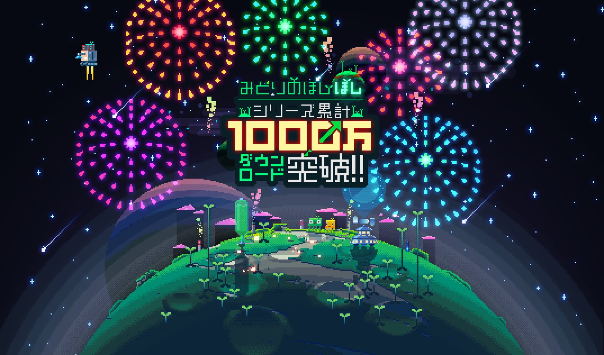 「みどりのほし」「みどりのほしぼし」は、特に海外でダウンロードを伸ばし、この度、1000万ダウンロードを突破いたしました。