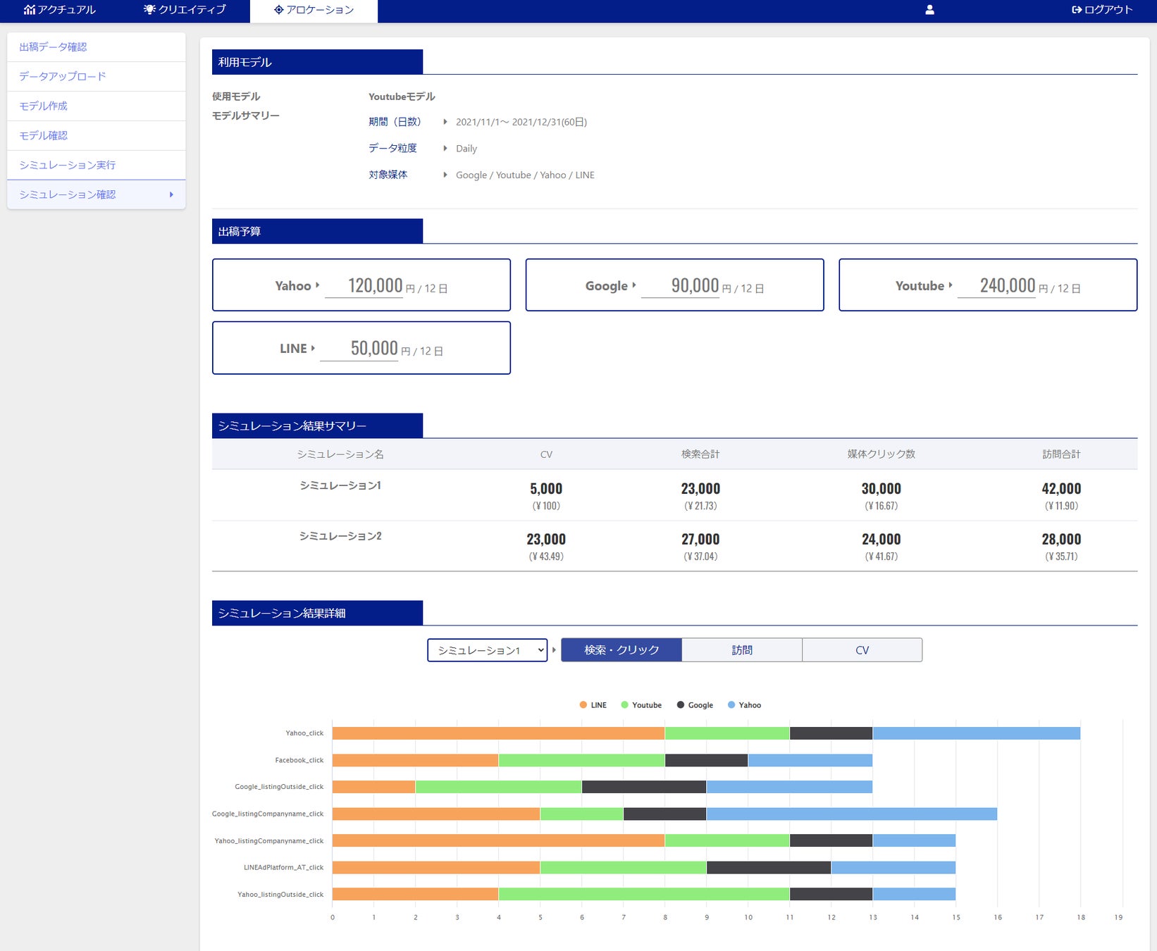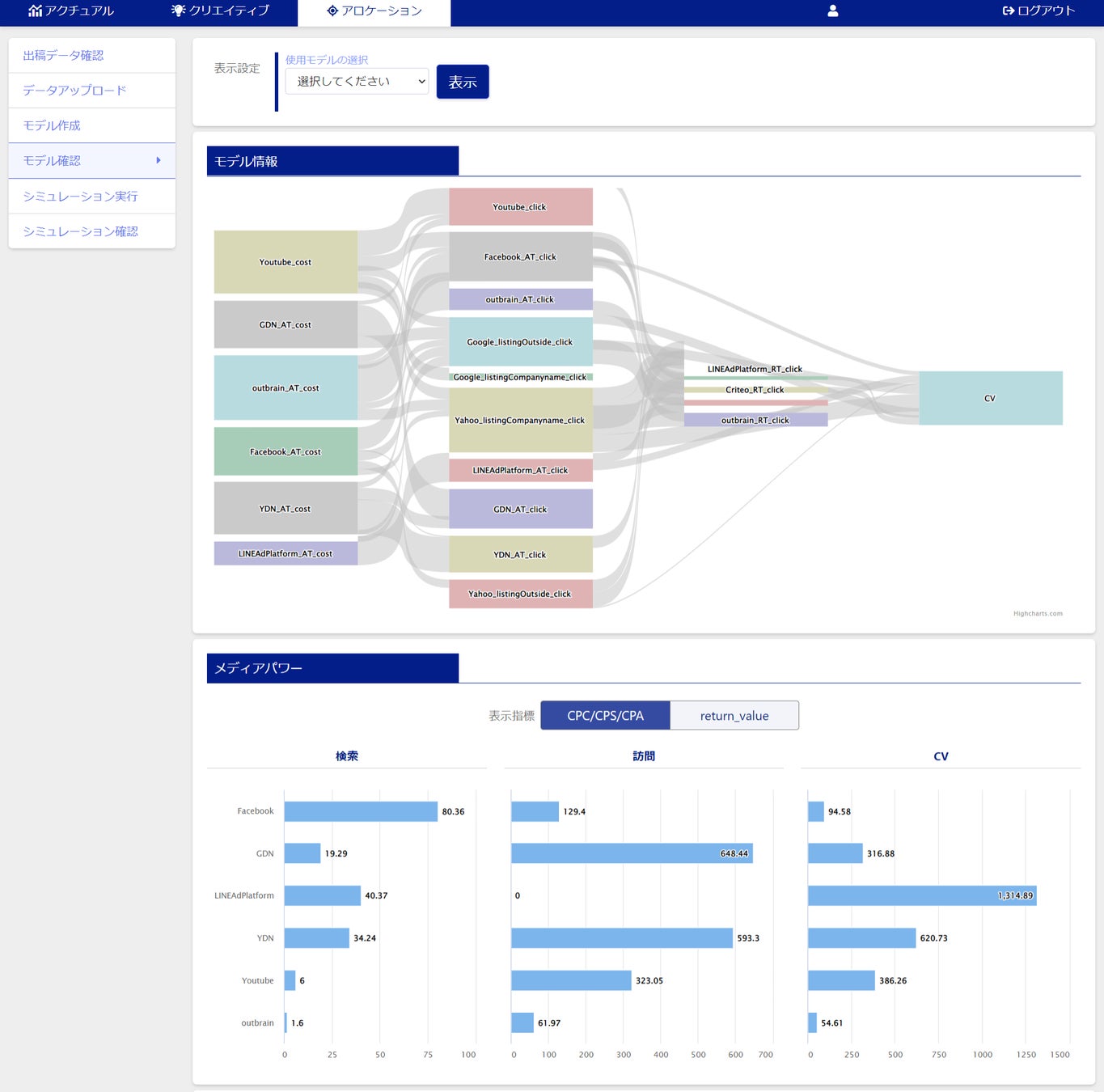 オンライン・オフラインの各種メディアの間接効果を含めたメディアパワーを定量化。CVまでのカスタマージャーニーを可視化し、成功パターンを提示。メディアアロケーションで期待される成果をAIでシミュレーションし、広告効果の最大化を支援します。