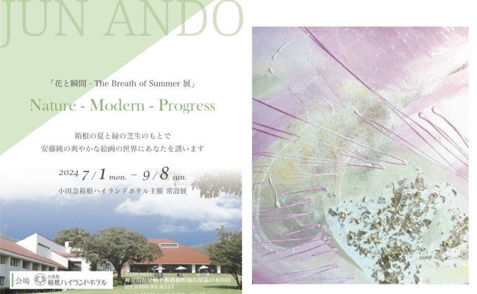 小田急箱根ハイランドホテル主催にて2024年7月1日(月)~9月8日(日)の期間中、画家・アーティストJUN ANDO(安藤純)の個展が開催されております。株式会社マイエスは、本事業に協力をしております。