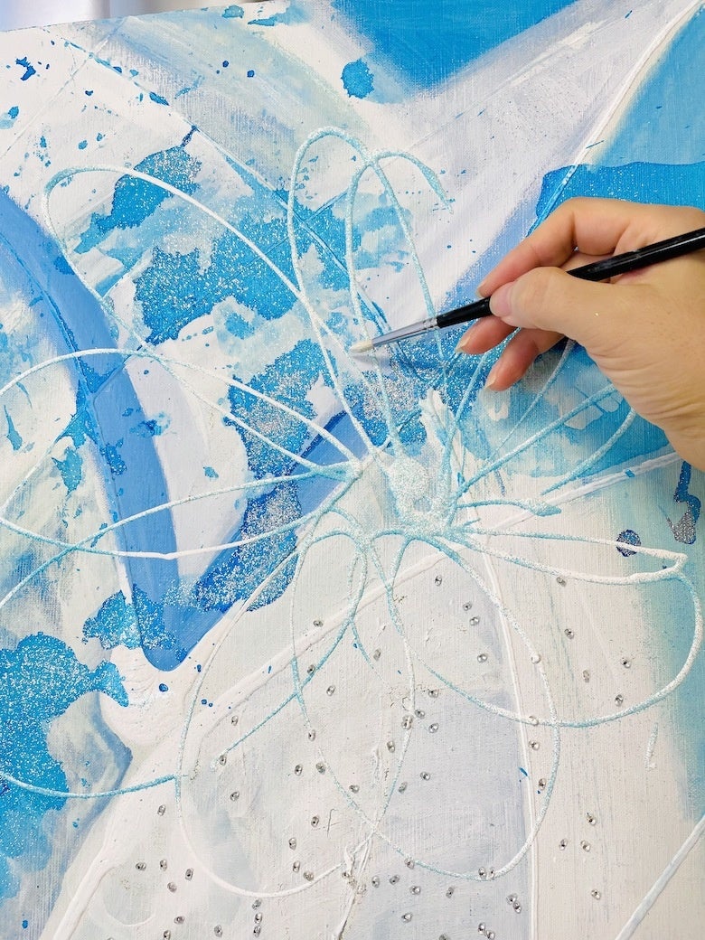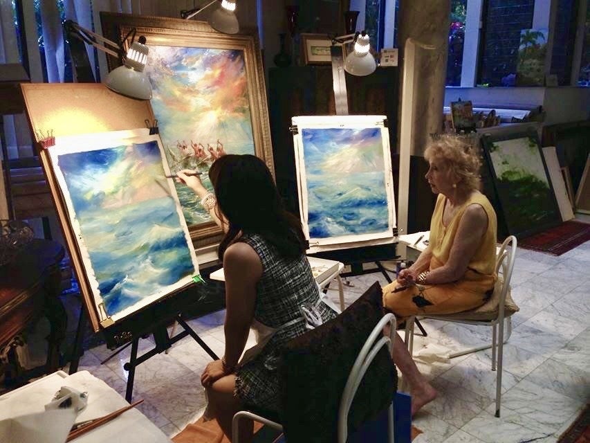 JUN ANDO (安藤純)は「アクリル技法」では、世界的な第一人者ある「MAKK氏」に師事し、同技法を受け継いできております。その作風は、一度見た自然を心に焼き付け、瞑想的に引き出してキャンバスに鮮やかに明るく描いていくものです。平和や自然への想いを一瞬一瞬、大切に作品に込めております。