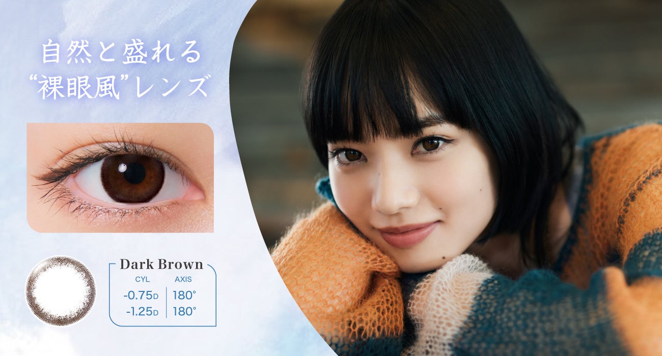 【小松菜奈イメージモデルの乱視用カラコン】に、“自然と盛れる裸眼風レンズ”新色「ダークブラウン」追加!「One day Aire REAL UV Toric(ワンデーアイレ リアルUV トーリック)」