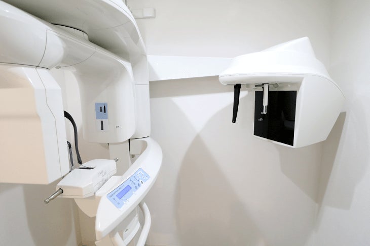 3次元(3D)での診断が可能となるデジタルレントゲンCTを導入しております。撮影されたデジタルレントゲンCTの画像は、各診療室のモニターで拡大してご覧いただけます。