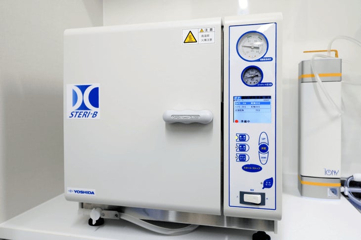 器具や設備の滅菌や消毒には一切妥協致しません。滅菌にはヨーロッパ規格EN13060の最高基準「クラスB」の条件を満たしたオートクレーブ(高圧蒸気滅菌器)を使用しており、多様なウイルスの滅菌に対応可能です。また、診療時に使用するグローブ、紙エプロン、紙コップ、麻酔用注射針などは、全て使い捨て(ディスポーザブル)にしています。患者様に衛生的で安全な環境で医療を提供するために、徹底した衛生管理・院内感染対策に努めています。
