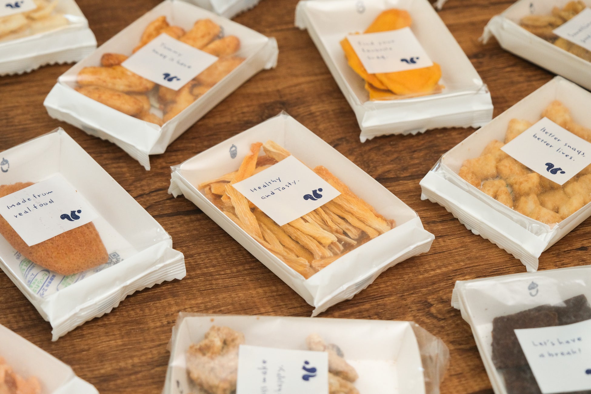 「snaq.me office」では、健康に配慮したGuilt Free®(ギルトフリー = 美味しいけれど食べても罪悪感がない)なおやつのみをお届けいたします。デスクで手軽にお召し上がり頂きやすいスティックタイプの「ショートブレッド」や無添加のドライフルーツとナッツをミックスした「トレイルミックス」など、常時150種類以上のギルトフリースナックの中からおやつをオフィスにお届けさせて頂くことで、業務中、ちょっと小腹が空いた時に身体に優しいおやつを、好みを選んで食べてもらえることで、労働生産性アップを一緒に目指していきます。