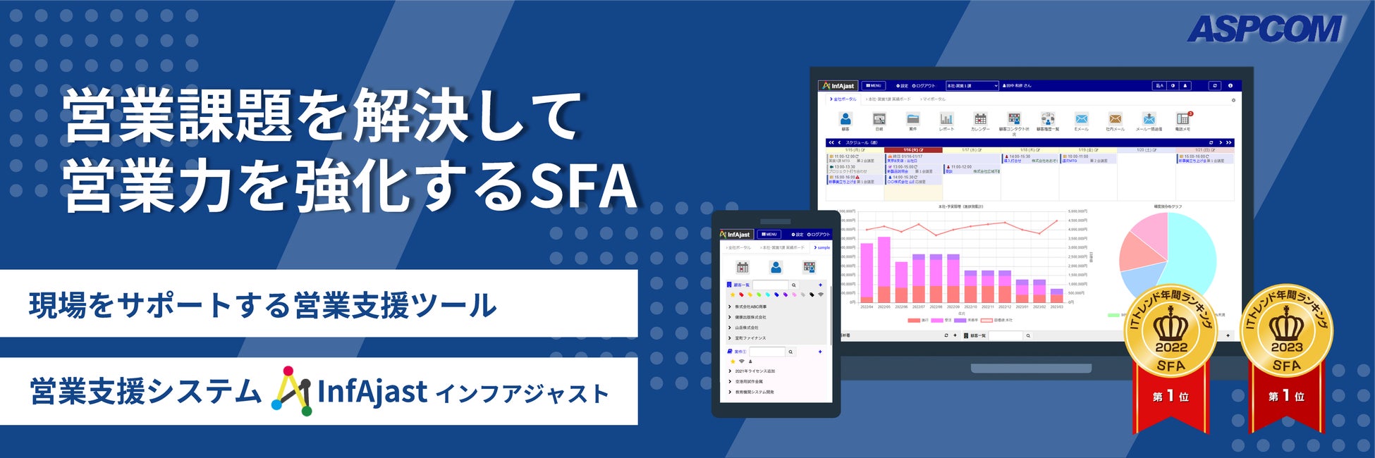 株式会社エーエスピーコム(所在地:京都府京都市 代表取締役社長:奥原啓史)は、国内最大級のオンライン展示会「IT トレンド EXPO 2024 Summer」に、同社が提供する営業支援システム「InfAjast インフアジャスト」の出展いたします。