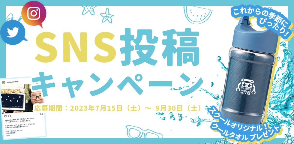 また、サマーチャレンジ2023の開催に合わせ、当スクールオリジナルクールタオルがもらえるSNS投稿キャンペーンも開催いたします。