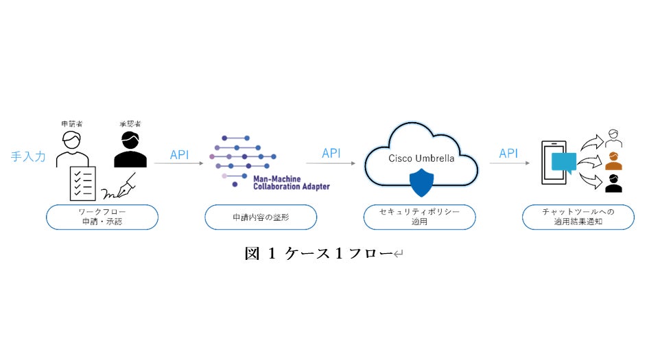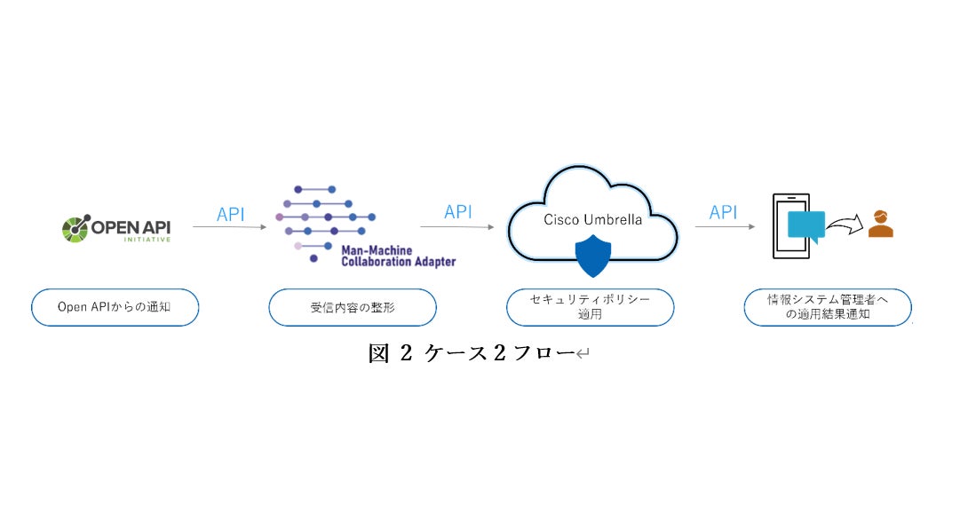 今回の協業にあたっては、Cisco Umbrella 及び マンマシン・コラボレーションアダプターのAPI活用事例として2種類のケースをもとにプログラムを開発しました。