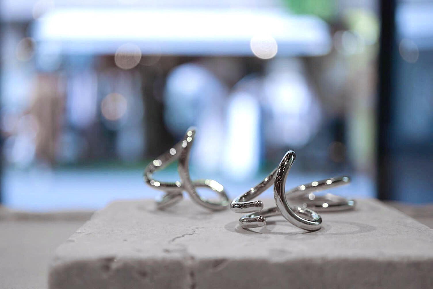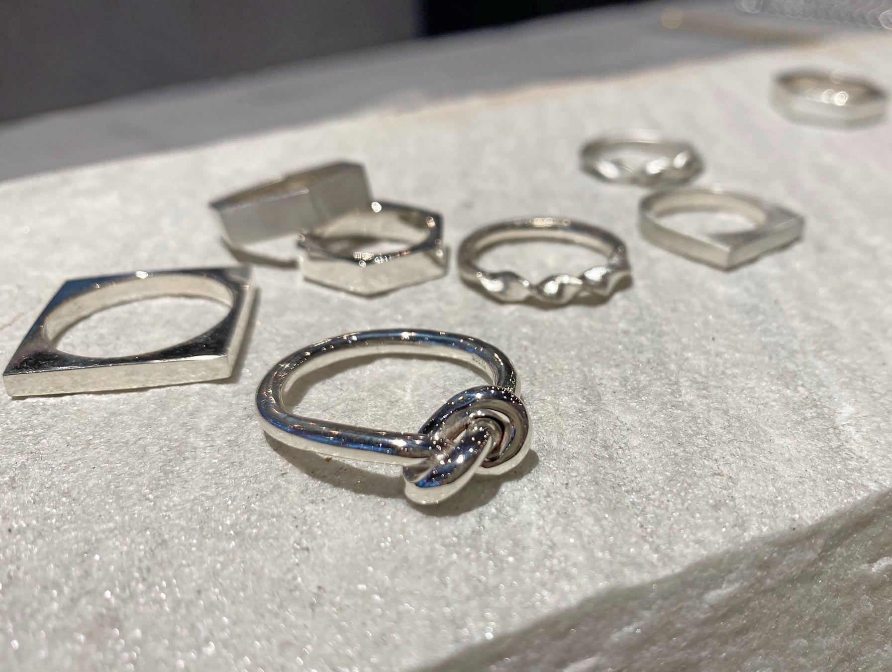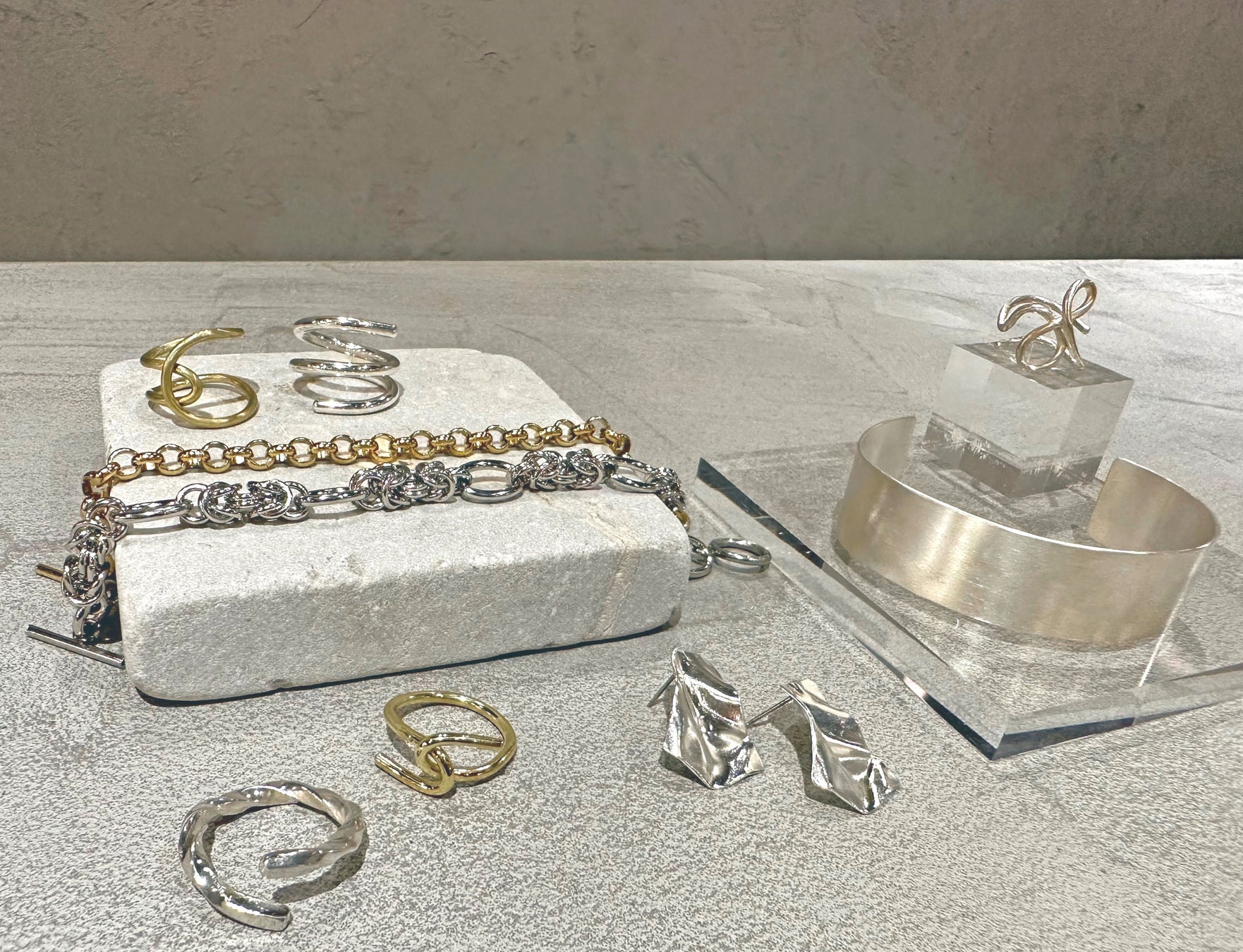 リング、バングル、ブレスレット、ネックレス、ピアスを取り揃えており、全て表面加工の組み合わせやサイズ調整が可能。ひとつひとつウヌの職人が手作りするため、その日にしか出会えないデザインが見つかるはず。