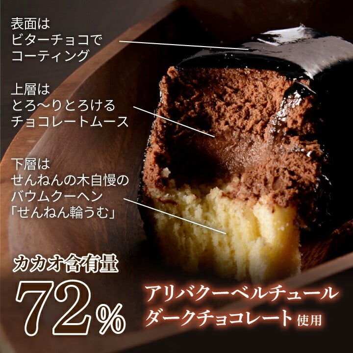 専用のバウムクーヘンを土台に、ムースとソースで仕立てた逸品です。