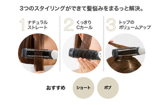 ヘアブラシのような使い勝手で、ヘアアイロンのようなスタイリング力を備え、安全性に配慮した設計で簡単・安全にご利用いただけるブラシアイロン。ヘアアイロンを使ってスタイリングを試してみたいけれど、「使いこなすのが難しそう」、「やけどが心配」、「熱ダメージが気になる」といったヘアアイロンビギナーにブラシアイロンは最適です。