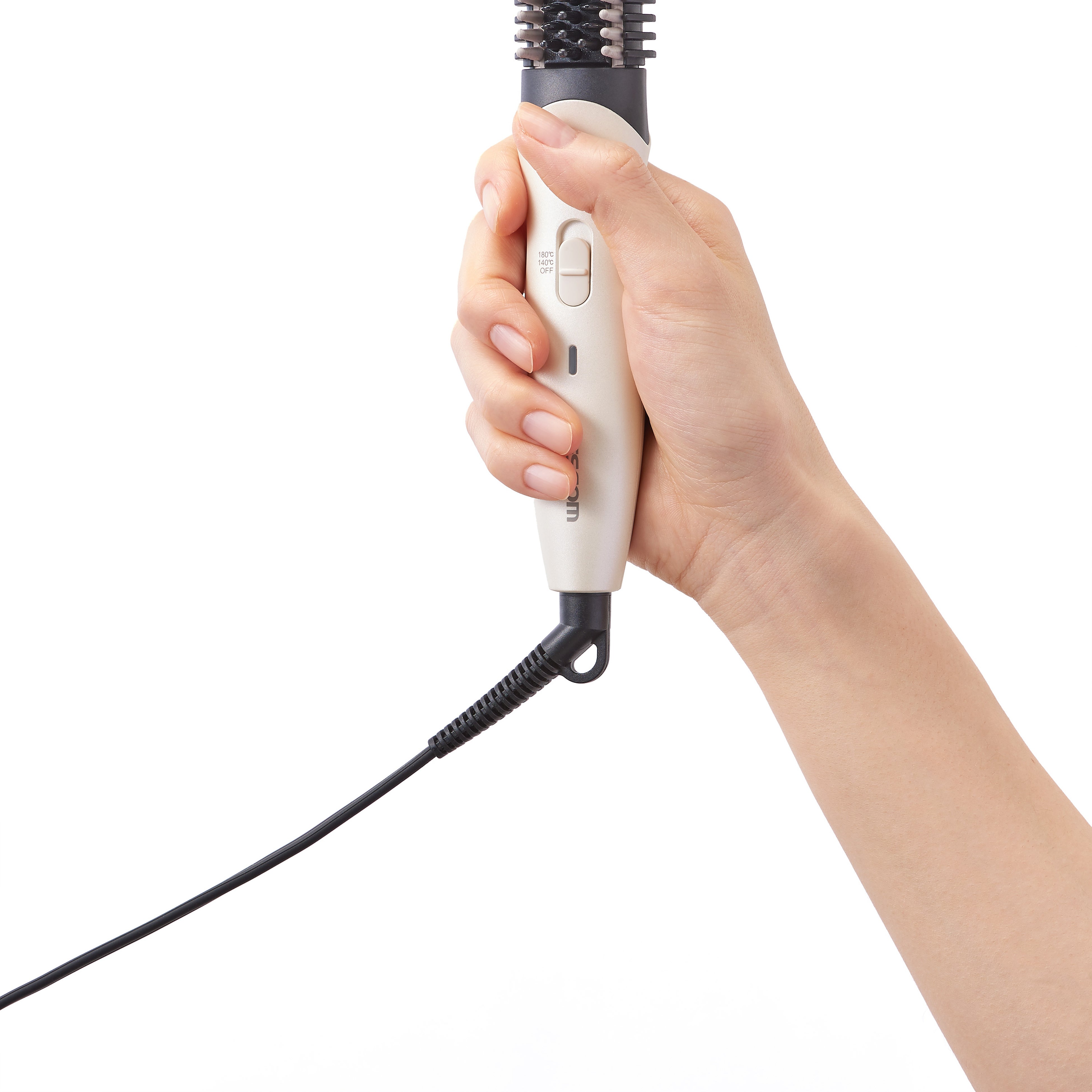 楕円のブラシ形状で、ナチュラルストレート、くっきりCカール、トップのボリュームアップも簡単に。ブラシ背面は、毛先や頭頂部のカールをキレイに保ったまま、スルッと抜けやすい構造です。小回りが利くコンパクトサイズで、ショートからボブヘアの方におすすめです。